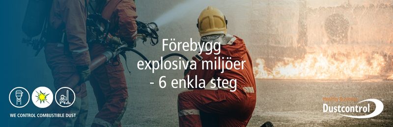 Förebygg explosiva miljöer med 6 enkla steg Posted on 6 november, 20253 november, 2025 by Dustcontrol SE Explosiva miljöer kan uppstå när man blandar brännbara gaser, dimmor, ångor eller dammpartiklar med luft i tillräckliga koncentrationer och man sedan tillsätter en tändkälla för att en explosion ska kunna inträffa. Konsekvenserna kan bli förödande – med risk för allvarliga personskador, förlust av liv och stora materiella skador. För att undvika sådana händelser är det avgörande att minimera mängden brännbart damm och eliminera alla potentiella tändkällor. Ta del av vår checklista för säker hantering av brännbart material. 6 råd för hantering av brännbart material: 1. Kontrollera det brännbara dammet Använd effektiva utsugnings- och filtreringssystem för att fånga upp dammpartiklar direkt där de bildas.Genom att förhindra att damm ansamlas minskar risken för både brand och explosion avsevärt. 2. Upprätthåll rengöringsrutiner Rengör regelbundet ytor, rör och svåråtkomliga utrymmen för att undvika farlig dammansamling.Även tunna lager av damm kan man antända om de virvlar upp i luften.Ta inga genvägar – konsekvent rengöring är avgörande för säkerheten 3. Eliminera tändkällor i riskområden Säkerställ att utrustning och verktyg är gnistfria och undvik öppen eld i dammiga miljöer.Kom ihåg att även statisk elektricitet kan fungera som en tändkälla – använd därför antistatiska lösningar och håll utrustningen jordad. 4. Använd rätt utrustning Säkerställ att maskiner, filter och verktyg är anpassade för miljöer med brännbart damm och uppfyller ATEX-kraven eller motsvarande standarder.Detta garanterar att utrustningen är säker att använda, uppfyller gällande regelverk och minimerar risken för driftstörningar och olyckor. 5. Ge tillräcklig utbildning Utbilda personalen i riskerna med brännbart damm och i säkra arbetsrutiner.En välutbildad personalstyrka kan tidigt identifiera potentiella faror och agera korrekt för att förebygga olyckor. 6. Övervaka och inspektera regelbundet Planera återkommande inspektioner av dammhanteringssystem, skyddsanordningar och riskområden.Genom proaktiv övervakning gör man så att man upptäcker avvikelser i tid och man kan åtgärda dem innan de eskalerar. Här kan du läsa mer här om hur vi kan hjälpa er! Mer i Nyheter We Control Combustible Dust 23 okt, 2025 Industriell punktutsugning för tungmetaller 09 okt, 2025 Dustlight – smart partikelmätare i fickformat 13 aug, 2025 Dammskyddsdörr som skapar ett undertryck och håller dammet på plats. 12 jun, 2025 Intellibin – Gör bytet av tunna enklare 30 apr, 2025