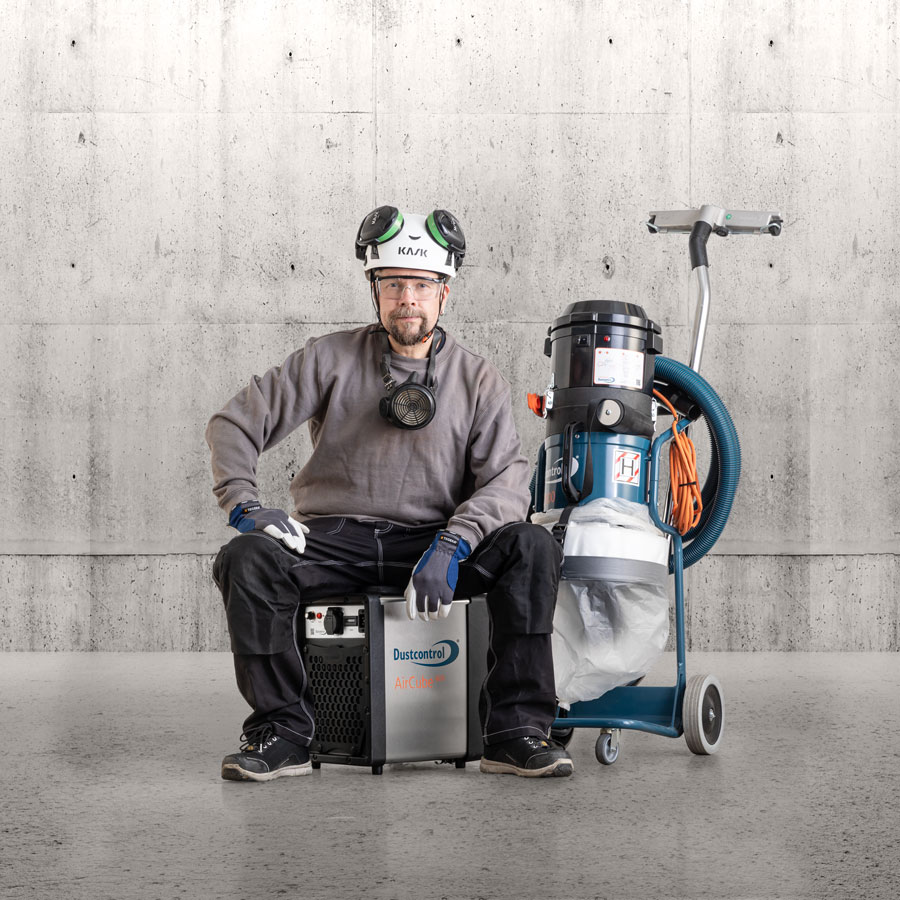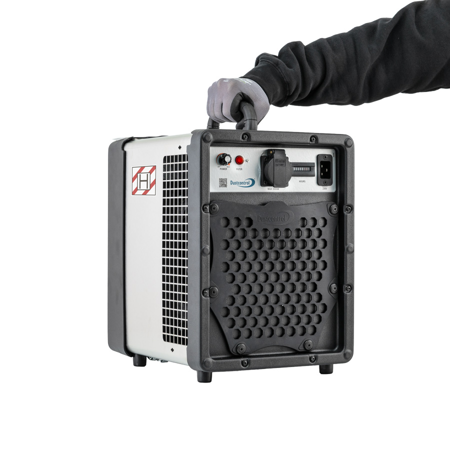 DC AirCube 600 avskiljer fint och farligt damm ner till 0,3 μm – som t.ex. byggdamm som uppstår vid arbete med betong, tegel, spackel och murverk. Andra användningsområden är snickerier eller bagerier där den renar luften och filtrerar bort hälsofarligt mjöl- eller trädamm. DC Aircube 600 kan också kombineras med vår dammskyddsdörr och partikelmätaren Dustlight för en dammfri och säker arbetsplats.